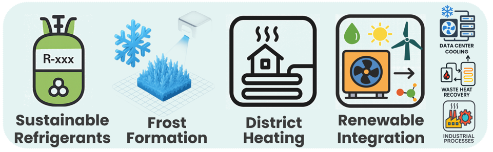 - Integrated Heat Pump Systems: Advancing the integration of heat pumps with renewable energy sources into flexible, low-carbon energy networks, including district heating, data center cooling, industrial processes, and waste heat recovery applications.